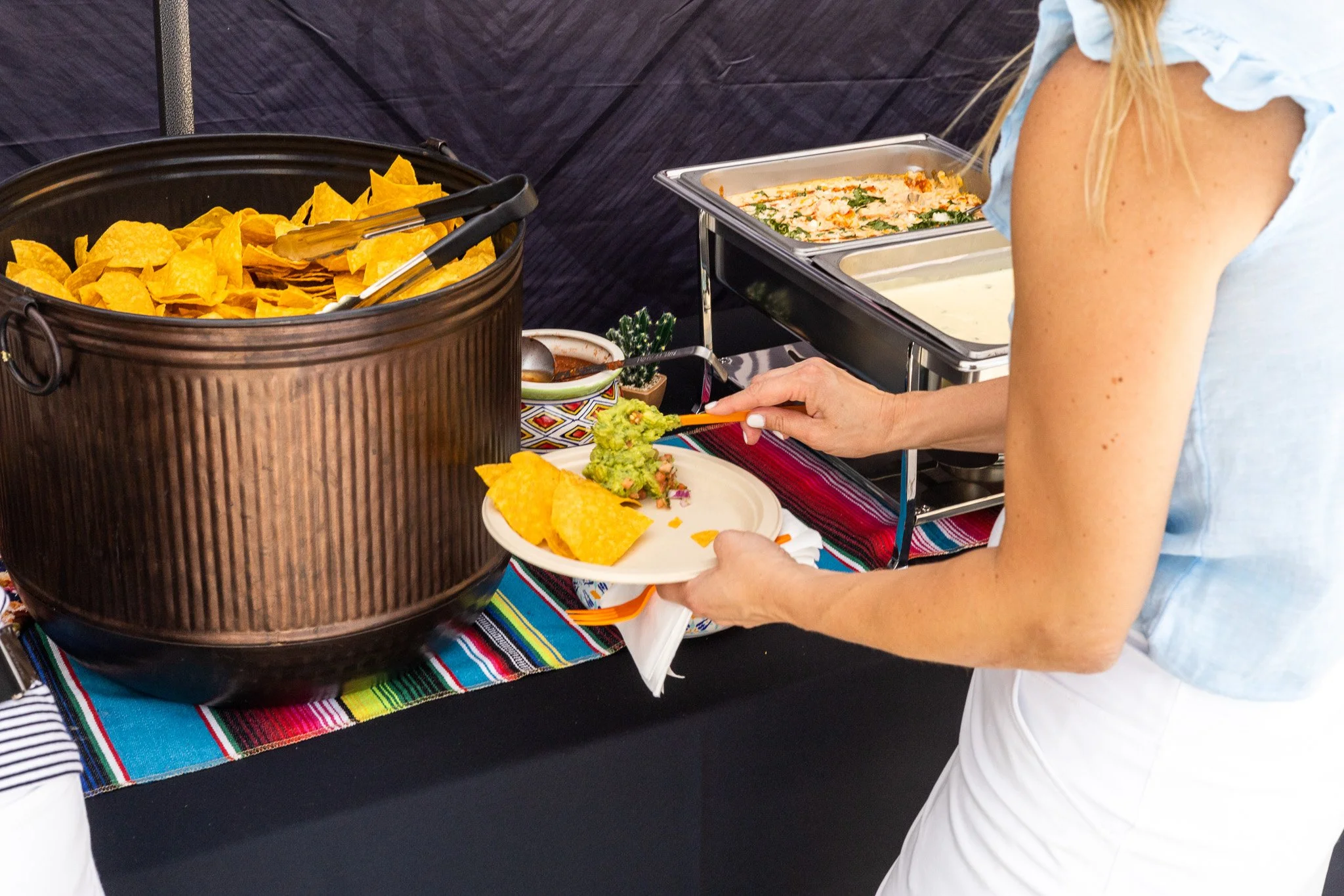Taco bars, dips, and options for everyone, even the picky ones (yes, veg + GF too).